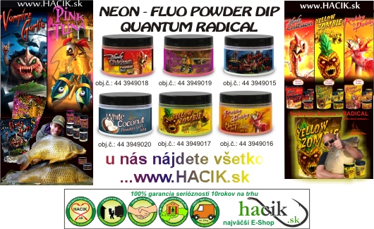 Mokré boilies treba namočiť do dipu, vytvorí sa gél, ktorý vábi kapre svojou arómou a fluorescenčnou farbou, má dlhodobé vnadiace účinky. Tento produkt nájdete na: Neonové dipy